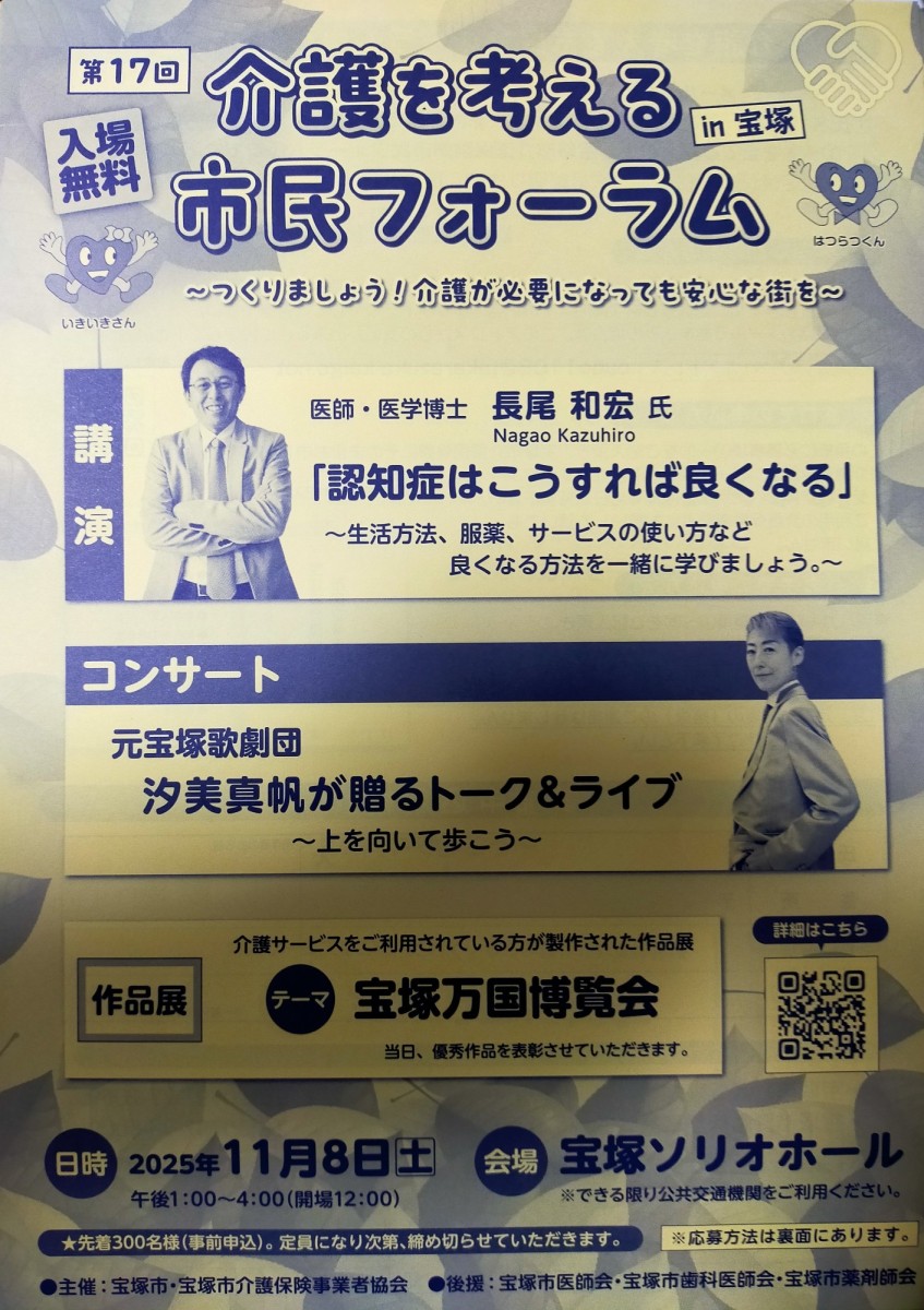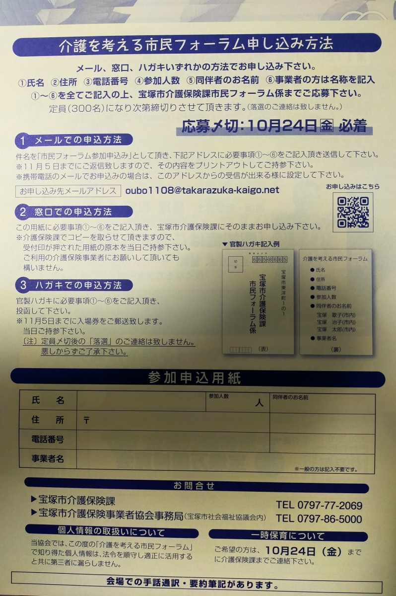 宝塚市 市民フォーラム案内 2025/10/11 こんにちは☺ 宝塚市事業者協会 訪問介護・訪問入浴・配食サービス部会から 宝塚市の市民フォーラムの案内が、今年もやってきました! たくさんの参加、お待ちしております。